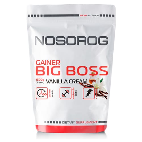 Nosorog Big Boss Gainer смак ваніль це білково – вуглеводна суміш + креатин підходить тим, хто збирається нарощувати м’язову масу, без збільшення запасу жиру в тканинах. До складу гейнера входять всі амінокислоти, які необхідні для побудови м’язів. Особливість використання в тому, що амінокислоти повільно розщеплюються на протязі 6 годин, що дозволяє організувати тривале харчування м’язів. В одній порції гейнера міститься 21 г білка.