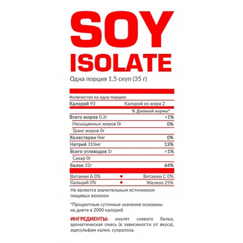 Склад Nosorog Soy Isolate Protein 1 кг на порцію: