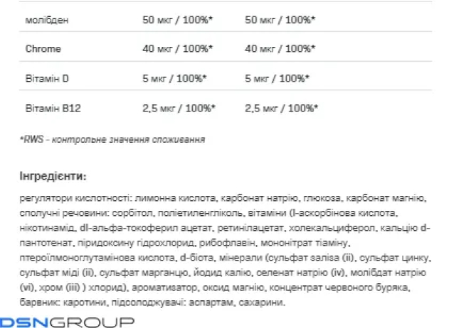Вітамін C – допомагає підтримувати правильне функціонування імунної системи під час та після інтенсивних вправ та допомагає захистити клітини від окислювального стресу.